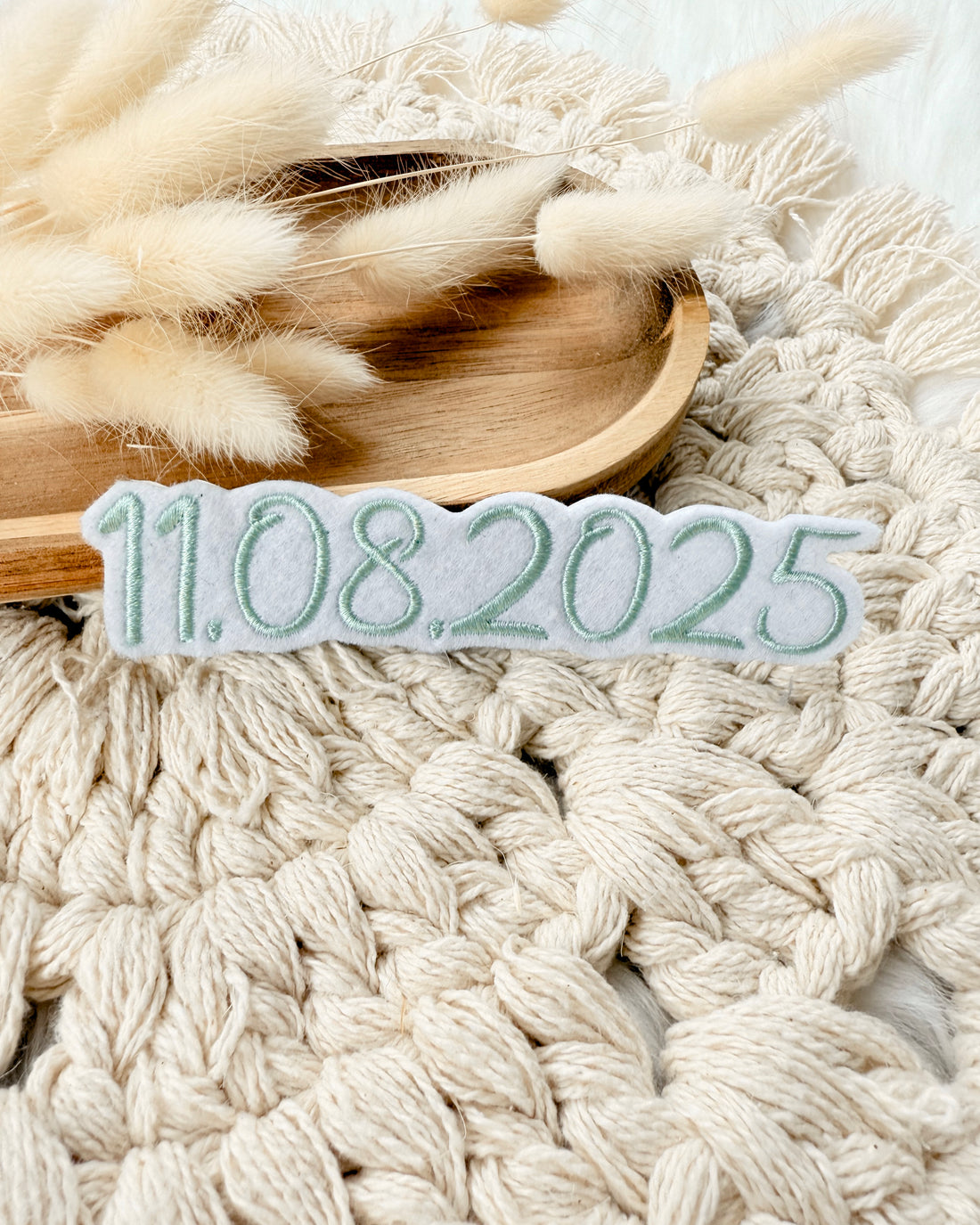 Datumsapplikation auf weißem Filz - Schrift 02Datumsapplikation auf weißem Filz - Schrift 02- Regulärer Preis