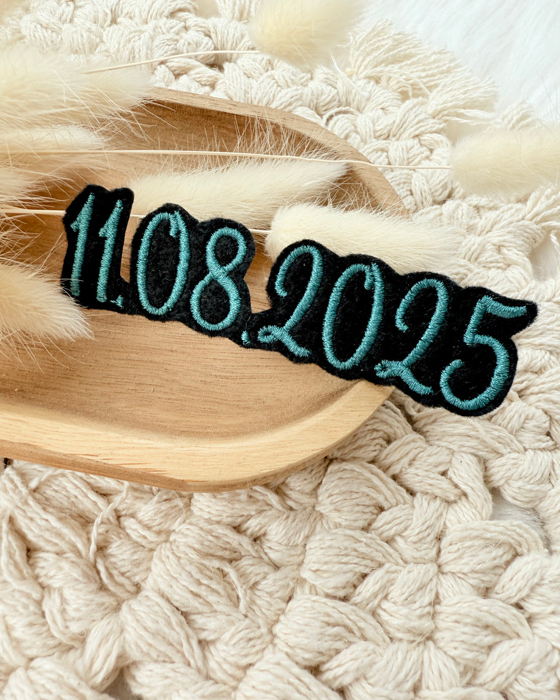 Datumsapplikation auf schwarzem Filz - Schrift 01Datumsapplikation auf schwarzem Filz - Schrift 01- Regulärer Preis
