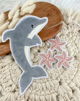 Wenn du die Applikation mit Bügelfolie erworben hast, kannst du den Filzrand bei Bedarf vorsichtig zurückschneiden und die Applikation aufbügeln (achte darauf, nicht in die äußere Plüschnaht zu schneiden). Komplett weg wirst du den Rand aber nicht bekommen.