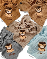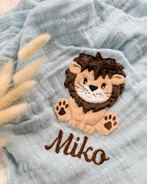 personalisiertes Musselintuch mit Löwe "Leonard"