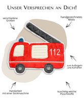 Die kleine Feuerwehr ist hervorragend geeignet zum Applizieren auf deinem DIY-Projekt. Ein Patch, ganz einfach zum Aufbügeln und Aufnähen für z.B. Schultüten, Kissen oder Accessoires. Auch perfekt, um Geschenke zur Geburt eines Babys oder zum Kindergeburtstag anzufertigen.