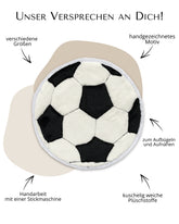 Wenn du die Applikation mit Bügelfolie erworben hast, kannst du den Filzrand bei Bedarf vorsichtig zurückschneiden und die Applikation aufbügeln (achte darauf, nicht in die äußere Plüschnaht zu schneiden). Komplett weg wirst du den Rand aber nicht bekommen.