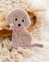 Wenn du die Applikation mit Bügelfolie erworben hast, kannst du den Filzrand bei Bedarf vorsichtig zurückschneiden und die Applikation aufbügeln (achte darauf, nicht in die äußere Plüschnaht zu schneiden). Komplett weg wirst du den Rand aber nicht bekommen.