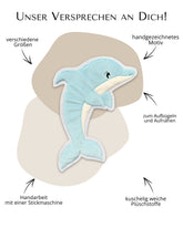 Wenn du die Applikation mit Bügelfolie erworben hast, kannst du den Filzrand bei Bedarf vorsichtig zurückschneiden und die Applikation aufbügeln (achte darauf, nicht in die äußere Plüschnaht zu schneiden). Komplett weg wirst du den Rand aber nicht bekommen.