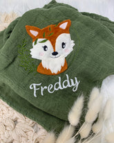 Unser personalisiertes Musselintuch mit dem kleinen Fuchs ist eine hervorragende Geschenkidee für Kinder zum Geburtstag oder zur Taufe sowie als Geburtsgeschenk für Babys.