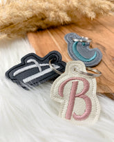 Unser tollen Monogramm-Schlüsselanhänger aus Kunstleder sind eine tolle Geschenkidee für Kinder und Erwachsene. Als Ranzenanhänger zum Schuleingang oder zum Anhängen an Geschenke, machten sie richtig was her!